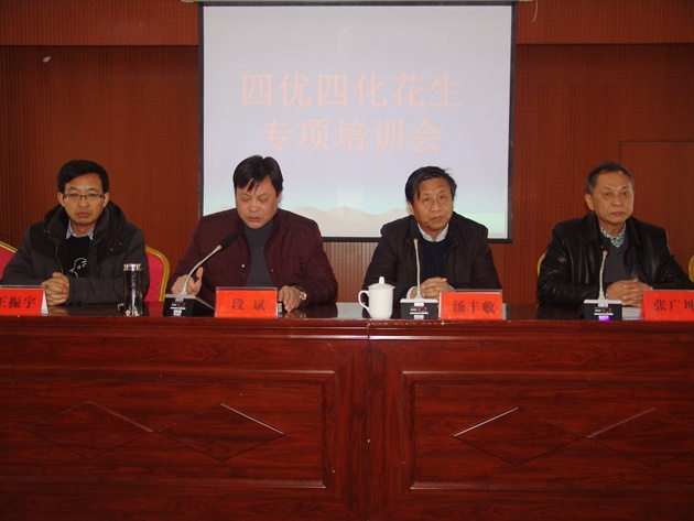 1月11日至12日,河南省“四優(yōu)四化”科技支撐行動(dòng)花生專(zhuān)項培訓會(huì )在我市平橋區職教集團公共實(shí)訓集地開(kāi)班。省農科院經(jīng)作所黨委書(shū)記、“四優(yōu)四化”花生專(zhuān)項“優(yōu)質(zhì)高油高油酸花生綠色安全高效生產(chǎn)技術(shù)集成與推廣”負責人湯豐收研究員,“高油花生綠色安全高效生產(chǎn)技術(shù)集成、示范”專(zhuān)題和“高油酸花生綠色安全高效生產(chǎn)技術(shù)集成、示范”專(zhuān)題負責人以及平橋區各鄉鎮農業(yè)發(fā)展中心負責同志、農技人員、花生種植大戶(hù)等150余人參加了培訓會(huì ),我院總農藝師段斌副研究員主持了會(huì )議。
