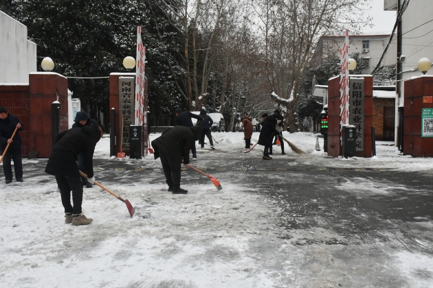 活動(dòng)中,全院從領(lǐng)導干部到普通職工,無(wú)論級別高低,無(wú)論男女老少,紛紛拿起鐵鍬、掃帚等工具,全力清掃機關(guān)院、家屬區主干道的積雪;清除中心花園、綠化帶景觀(guān)樹(shù)上的冰雪,防止壓斷壓折樹(shù)枝;對掉落的樹(shù)枝進(jìn)行清除,及時(shí)消除了交通阻礙。清掃過(guò)程中,大家相互協(xié)作、齊心協(xié)力、配合默契,掃出一條“平安路”。茶葉所、特作所組織志愿者前往本院陸廟、五里店試驗基地對試驗拱棚進(jìn)行了人工除雪作業(yè),保證了科研設施的安全。