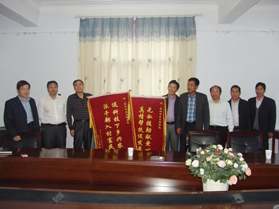 5月10日,息縣小茴店鎮張老莊村干部群眾一行五人把寫(xiě)有“無(wú)私援助獻愛(ài)心真情幫扶促發(fā)展”、“送科技下鄉興農派干部入村富民”字樣的兩面錦旗送到我院,感謝我院選派干部到該村擔任黨組織第一書(shū)記三年來(lái)對該村的大力援助。院長(cháng)段仁周、副院長(cháng)劉祥臣親切會(huì )見(jiàn)了張老莊村到訪(fǎng)的干部群眾。段仁周院長(cháng)表示,雖然村黨組織第一書(shū)記工作任期已經(jīng)結束,但市農科院與張老莊村建立的緊密聯(lián)系不能斷,建立起來(lái)的深厚情誼不會(huì )淡,市農科院仍將一如繼往地關(guān)心支持張老村的經(jīng)濟社會(huì )發(fā)展,為張老村的各項事業(yè)發(fā)展提供力所能及的幫助。